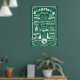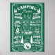 Poster de Camping branco verde com fundo verde e letras brancas. Regras divertidas para seu convidado visitando seu local de acampamento.
