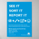 Fortaleça o local de trabalho, a fábrica ou o escritório com este poster de segurança. Brilhante e colorido para passar a mensagem. Você pode personalizar este poster com seus detalhes de contato para encorajar a emissão de relatórios ou riscos e incidentes.