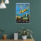O poster de Atlantic City Pagent de 1923. Um fundo azul com uma mulher de maiô vintage num mergulho de cisne.