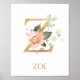 Letra elegante Z monograma poster com cor de água, cor de pêssego rosa, rosa e folhagem verde.