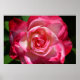 Poster de rosa rosa e branco. Uma bela rosa rosa e branca, com pétalas brancas interiores e um caimento rosa escuro à volta das bordas rodeadas por um fundo verde macio de folhas de rosa. Parece bonito para casamentos, chás e festas de verão. Um presente de excelente para fãs de fotografia floral, rosas e flores.