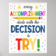 CADA REALIZAÇÃO COMEÇA COM A DECISÃO DE TENTAR! Um poster excelente para ficar em uma sala de aula, escritório de orientação escolar, escritório de assistentes sociais, terapeuta infantil ou escritório de psicólogos infantis para lembrar às crianças que o primeiro passo em qualquer realização é a vontade de tentar! Um lembrete de excelente para aumentar a confiança e a participação na sala de aula. Um poster muito brilhante, divertido e alegre para decorar a sala de aula, o escritório da assistente social, o escritório de terapeutas ou conselheiros.