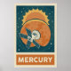 Um retrô ilustrativo do Mercúrio com um satélite.