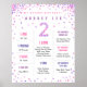 Celebrar o marco com o segundo aniversário da sua filha com este poster de confete colorido arco-íris com cor rosa e roxo, lilás e lavandas, apresentando os livros favoritos, comidas, brinquedos, altura, peso, amores e muito mais, você certamente apreciará este poster por anos. Fácil de editar e seria fantástico para a sua festa!