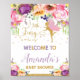 Bonito Sinal de Boas-vindas ao Chá de fraldas de Fada Floral. Personalize seus detalhes de forma fácil e rápida, basta pressionar o botão personalizar para reorganizar e formatar o estilo e a colocação do texto. Itens correspondentes disponíveis no repositório! c) O Feliz Cat Studio