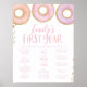 Garotas primeiro aniversario Milestone do Primeiro Ano Poster. Rosquinha Cresce tema com rosquinhas cor-de-rosa, roxa e pêssego com detalhes falsos de brilho dourado. Um tema de festa de primeiro aniversario divertido para a sua garotinha. Um sinal popular de primeira festa de aniversário para mostrar aos convidados todos os seus pequenos marcos nos últimos 12 meses. Itens correspondentes disponíveis.