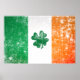 Poster de bandeira da Irlanda, em apuros, com um dentro de shamrock.