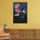 Águia Americana Dramática com bandeiras dos EUA como asas contra um céu azul escuro. Texto na parte inferior da "América". Por D. Bennett, da Balance America.