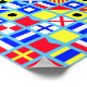 Esta coleção colorida de sinalizadores de sinal adiciona um toque náutico a qualquer sala. O plano de fundo pode ser definido pelo usuário (recomendamos azuis leves ou cinzentos). Quando estas bandeiras são decodificadas nas letras correspondentes, elas formam um quebra-cabeça de busca de palavras relacionado a navios e barcos. Há 13 palavras: "náutica", "capitão", "arco", "popa", "porto", "estibordo", "bússola", "vela", "capitão", "navio", "vela", "nó" e "âncora". Navegação suave!