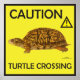 Sinal de passagem de tartaruga de precaução. As pessoas ajudam a saber que as tartarugas podem estar a atravessar a calçada, a pista ou as vias de marcha. Imagem de uma tartaruga-caixa.