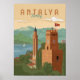 O marco mais marcante de Antalya, o Yivli Minare (minarete flamejado), opõe-se a um Velho porto cheio de iates e às praias costeiras turcas cercadas pela cidade antiga de Kaleici. Seguido pela torre de relógio da era otomana na frente dela. Antalya é uma porta de entrada para a região sul do Mediterrâneo da Turquia. Ilustração original da safra de Nasir Udin para Vectro Poster Co.