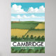 Cambridge "por uma pausa", belo poster de viagens de trem ao estilo vintage do incrível campo rolante do verão.