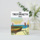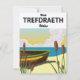 Trefdraeth Wales pescando barco à beira-mar e poster de viagens de praia.