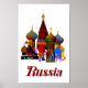 Poster de viagens de estilo Vintage para a Rússia, com catedral de Santo Basil.