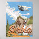 Voar Para O Poster de viagens Sérvia. Poster da paisagem de desenho animado sérvio.
