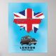 Reino Unido da Grã-Bretanha - Ilustrated map poster de viagens, apresentando um mapa da capital britânica contra uma bandeira sindical ou do Reino Unido.