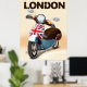 Patinete de solteiros de Londres. Motomoto retrógrado britânico de Inglaterra com bandeira da União Britânica. Tomada de Londres, poster de férias na Inglaterra.