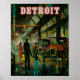 Poster de viagens de estilo Vintage para Detroit, Michigan. A Cidade do Motor. 16 x 20