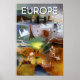 Poster de viagens de estilo Vintage para a Europa, com imagens icônicas de vários países europeus.