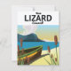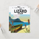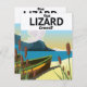 Lizard Cornwall costuma poster de viagens com um barco de pesca na praia.