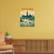 Poster de viagens retrô de ottawa canada com colina do parlamento e caiais no rio