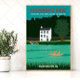 Este poster de viagens retrô apresenta a Cove de Fletcher (Fletcher's Boathouse) no Marco Histórico Nacional do Canal Chesapeake & Ohio em Washington DC. É perfeito para qualquer um que passou o barco dos fins de semana e correndo pelo antigo canal e pela toalha.