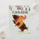 Esqui no Canadá os desenhos animados exibem o poster de férias de vintage ou retrô. Poster de viagens de desenho animado de urso castanho