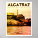 Poster de imagem retrô da famosa ilha da prisão (Ilha Alcatraz) na Baía de São Francisco.