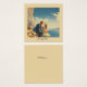 poster viagens vintage de um casal romântico perto do mar. Flores cor-de-rosa macia no primeiro plano e um belo céu azul claro no fundo,