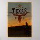 Sunset com vaqueiro com crânio de boi do Texas e de boi longo da nossa coleção de vaqueiros do Texas