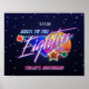De volta à Poster dos anos 80, aparece uma tipografia de estilo neon de "VOLTAR AOS ANOS 80''. Esses designs incluem elementos de roxo escuro, azuis, amarelo, laranja e pinks, sol neon e formas, e elementos de design inspirados no anos 80. Os produtos incluem um modelo para personalização pessoal.