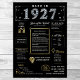 Esta VOLTA EM 1927, a poster digital está repleta de fatos divertidos, notícias e destaques do que aconteceu anos atrás. Com sotaques falsos de ouro e prata sobre fundo preto, ícones distintos e tipografia ousada, o poster digital expele um eterno, aspecto na moda. Ele serve como uma peça memorável de conversa em festas de aniversário e aniversários, e quando emoldurado, ele se torna um presente pensativo, adicionando um toque de nostalgia a qualquer espaço. Aprecie o seu amado com o nosso poster em 1927, um presente memorável, cheio de nostalgia e individualidade. Bursting com detalhes cativantes, oferece uma viagem personalizada através da história, fazer-a uma seleção ideal para marcar uma feliz ocasião de aniversário. A foto é um poster imprimível para o ano de 1927 que inclui informações como renda média por ano, nomes populares de bebês, eventos históricos como a 18ª Emenda e o Acidente no Mercado de Ações, invenções da época, tendências da moda como Vestidos de Flapper e Chapéus de Cloche, termos de gírias e custos médios de itens como uma libra de pão e um galão de gás.