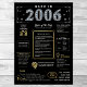 Tome uma jornada de volta a 2006 com nosso cativante poster de aniversário digital, repleta de fatos históricos, eventos significativos e narrativas cativantes do passado. Adorado com ouro elegante e sotaque prateado contra um pano de fundo preto impressionante, este poster de aniversário irradia o charme do eterno. Nosso poster de aniversário oferece uma espiada intrigante em 2006, mergulhando em aspectos como renda média, invenções notáveis, ocorrências significativas, tendências da moda e expressões coloquiais da época. Destaca momentos-chave como o advento das plataformas de mídia social, a onda de TV real e o surgimento de serviços de transmissão contínua. Invenções como smartphones, telefones com câmera e carros híbridos ganham palco central, refletindo os notáveis avanços tecnológicos da era. No geral, o poster capta a essência da vida nos anos 2000, encapotando tanto a inovação tecnológica quanto os fenômenos culturais como a música e a moda. Serve como um começo de conversa cativante em comemorações de aniversário e aniversários, e quando elegantemente enquadrado, evolui para uma lembrança apreciada, preservando o espírito dos tempos para as gerações vindouras.