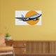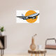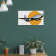 Um avião voando contra um sol laranja. Esta design parece realmente eficaz nestes Poster