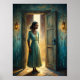 Na imagem, uma mulher de pele escura fica ao lado de uma porta aberta, sua expressão cheia de tristeza. As lágrimas descem pelas bochechas, escutando com a luz suave que derramar pela porta. Seu cabelo enrola seu rosto, acentuando a profundidade de suas emoções. Ela veste um vestido simples e fluente que aumenta a sensação de vulnerabilidade. O fundo está suavemente desfocado, atraindo foco para sua expressão pungente e para a atmosfera sossegada e sombria. A cena evoca uma sensação poderosa de desejo e dor de coração, como se ela fosse presa entre dois mundos.