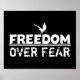 Uma declaração inspiradora e patriótica "Liberdade sobre o Medo" em letras brancas em negrito sobre um fundo preto puro que você pode personalizar para a cor de sua escolha para corresponder a qualquer decoração. Um ditado apropriado nestes tempos desafiadores.