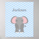 Um padrão moderno de fêmur azul e uma ilustração fofinha de elefante são apresentados nesta poster de arte personalizada de berçário. Personalize facilmente com o nome do seu filho! Perfeito para uma creche de bebês ou um quarto de criança. Cores personalizadas disponíveis mediante pedido.