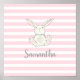 Um belo berçário decora poster personalizável, coelho em linhas brancas e cor-de-rosa que ajuda a planejar a nova chegada.
