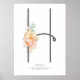 Poster Decoração de Casa Floral Rosa Bege Monograma Letra