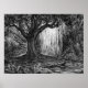 Ink artwork by Paxdomino depicting a secluded waterfall within a shadowed forest, a view only for those who dare venture deeper into the woods.