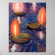 Pintura de profundezas iluminadas flutuando e refletindo na água.