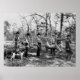 Foto antiga da 1920 de cinco caçadores na floresta com cães caçadores, carregando dois veados mortos. Foto de Cawthon, Primaveras DeFuniak, Flórida.