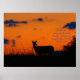 Um veado com o pôr do sol laranja no fundo e um verso: Como as calças de veado para os riachos d'água, então calça minha alma para você, Ó Deus. Salmo 42:1