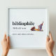 Esta poster apresenta uma definição da palavra "bibliófilo". Imagem acima da definição, é uma ilustração de uma garota lendo um livro. Também disponível em branco a preto.