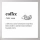 Esta poster apresenta uma definição engraçada da palavra "café". Figura acima da definição, uma ilustração desenhada à mão de alguns grãos de café. Enquadre-o, para um excelente adicional a qualquer bar de café ou cozinha! Também disponível em branco a preto.
