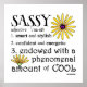 Definir Sassy em sua forma verdadeira para uma mulher incrível. Tudo sobre esta imagem tem um tronco, das fontes ousadas às margaridas brilhantemente coloridas. A definição é a seguinte: 1. esperto e na moda, 2. confiante e enérgico, 3. (o mais importante de todos) dotado de uma quantidade fenomenal de LEGAL! Se você sabe de uma mulher ou garota realmente assustadora isso seria definitivamente para ela. VOCÊ VAI GAROTA!