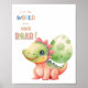 Este pôster apresenta um adorável bebê dinossauro aquarela carregando seu ovo e a citação motivacional "Deixe o mundo ouvir você RUGIR!". Você pode alterar a cor clicando no botão "Editar este design". Tenha um dia adorável, meu amigo!