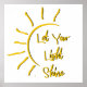 deixe sua luz brilhar. Deixe o seu Poster de sol brilhante brilhar é uma bela e inspiradora peça de arte que irá iluminar qualquer lugar. A poster apresenta um sol colorido, com as palavras "Deixe sua luz brilhar" escritas em uma fonte alegre. Esta poster é a maneira perfeita de lembrar a si mesmo e aos outros de serem positivos e de deixar a sua luz brilhar. É um presente excelente para amigos, familiares e entes queridos.