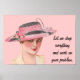Este poster apresenta uma imagem vintage de uma mulher com um elegante chapéu rosa, sobre um fundo rosa personalizável. O texto, "Deixe-me deixar tudo e trabalhar em seu problema", também pode ser personalizado.