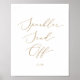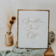 Este delicado faísca da caligrafia dourada que manda o sinal de poster é perfeito para um casamento moderno. A design romântica minimalista apresenta uma magnífica e elegante tipografia amarela ouro champanhe num fundo branco com um aspecto simples e limpo. Personalize o sinal com o tempo de envio.
